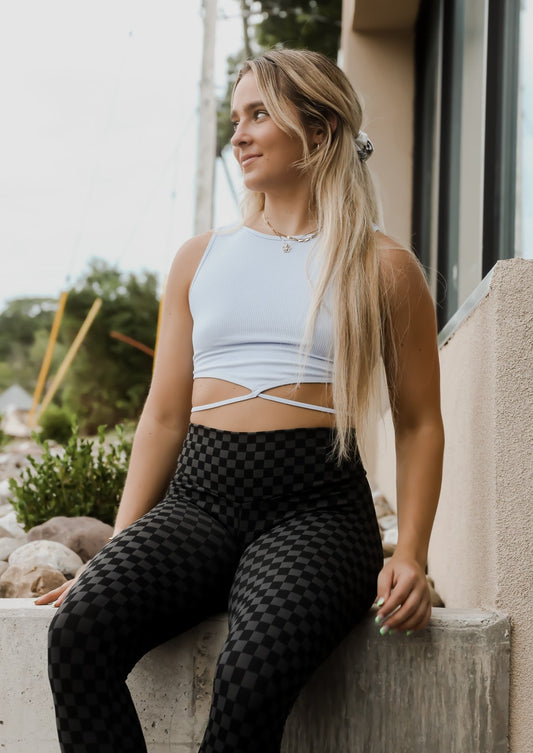 Make Moves Ribbed Tie Waist Crop - Ice Blue