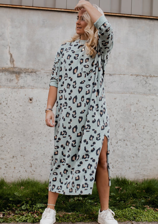 Lets Lounge Leopard Maxi Dress *Blue Grey*