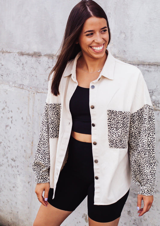 Oh So Smitten Oversized Leopard Denim Jacket *Cream*