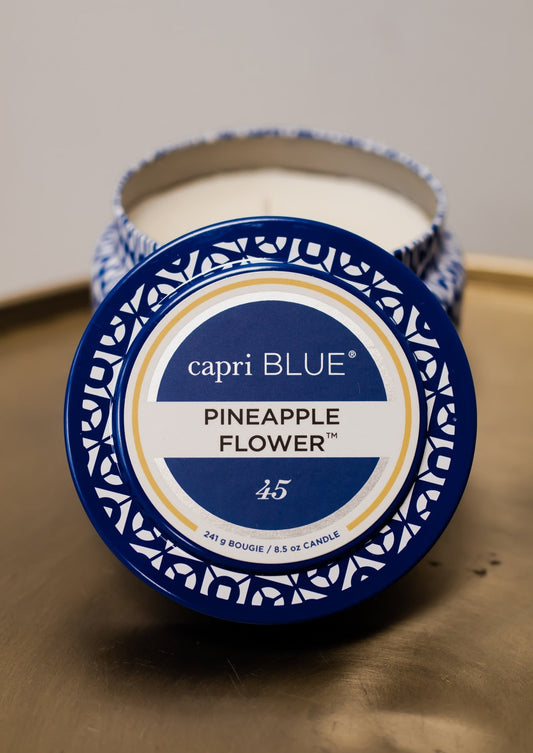 Pineapple Flower Printed Travel Tin, 8.5oz - Capri Blue