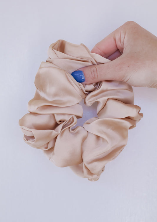 Sold outSilk Jumbo & Tulle Scrunchie *Tan*