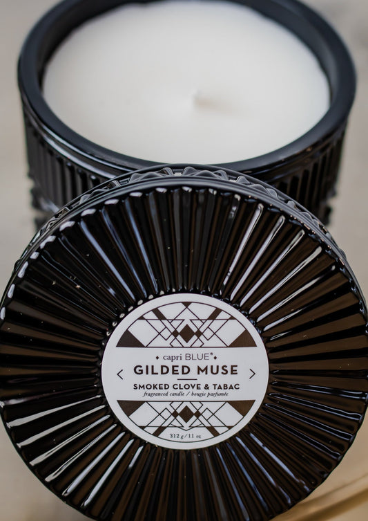 Smoked Clove & Tabac Gilded Faceted Jar, 11 oz- Capri Blue *Kenzies Pick*