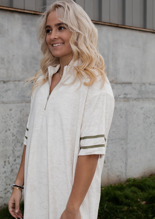 The Perfect Pool Dress - Ivory with Deep Green Stripes