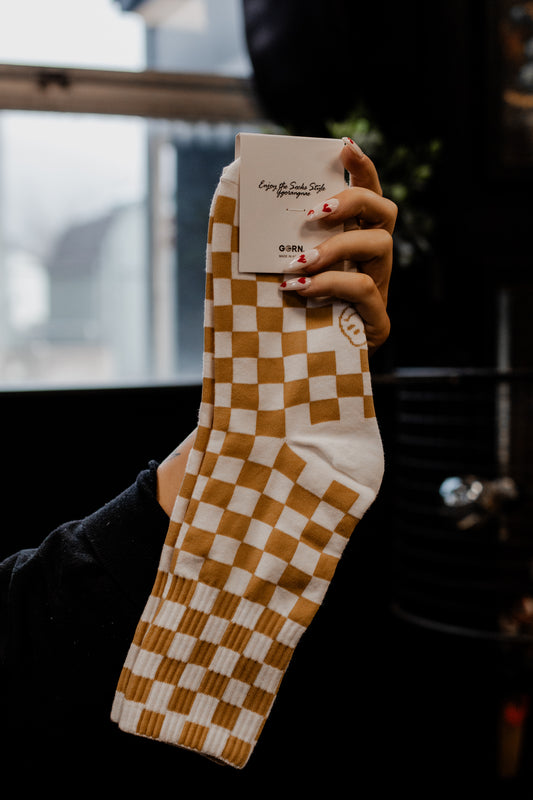 Best Mustard Checker Crew Sock