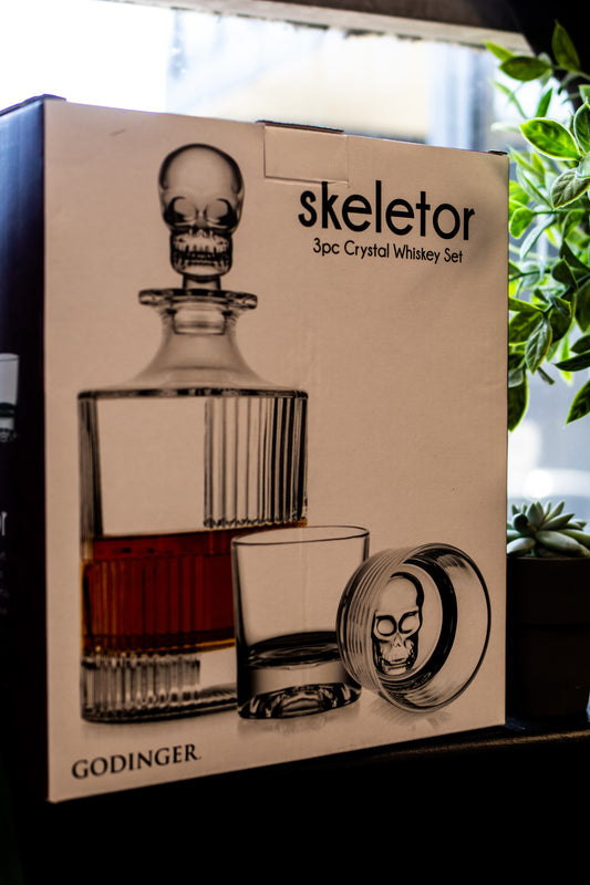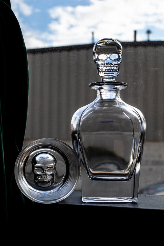 Crystal Set of 3 Skull Decanter set & Whiskey Skull Glasses *Engraving optional*