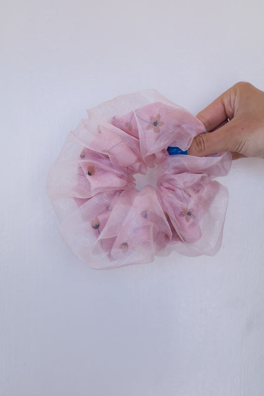 Dual Fabric Floral Jumbo Scrunchie *Baby Pink*