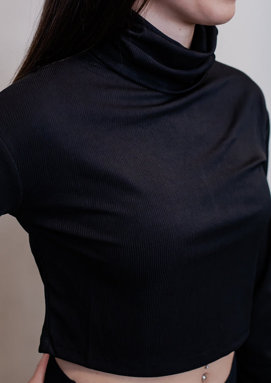 Dream State Ribbed Turtle Neck Crop Top *Black*