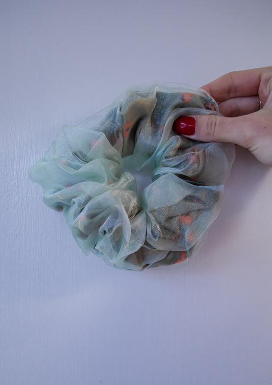 Dual Fabric Floral Jumbo Scrunchie *Mint*