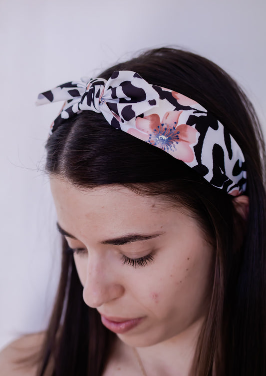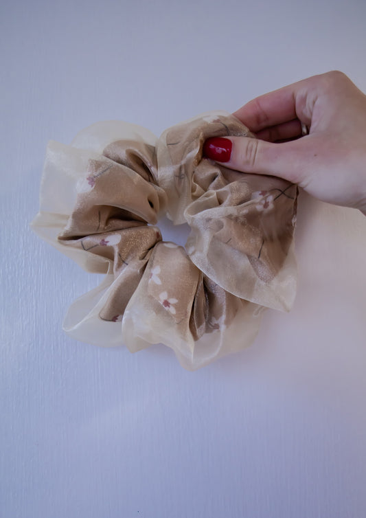 Dual Fabric Floral Jumbo Scrunchie *Tan*