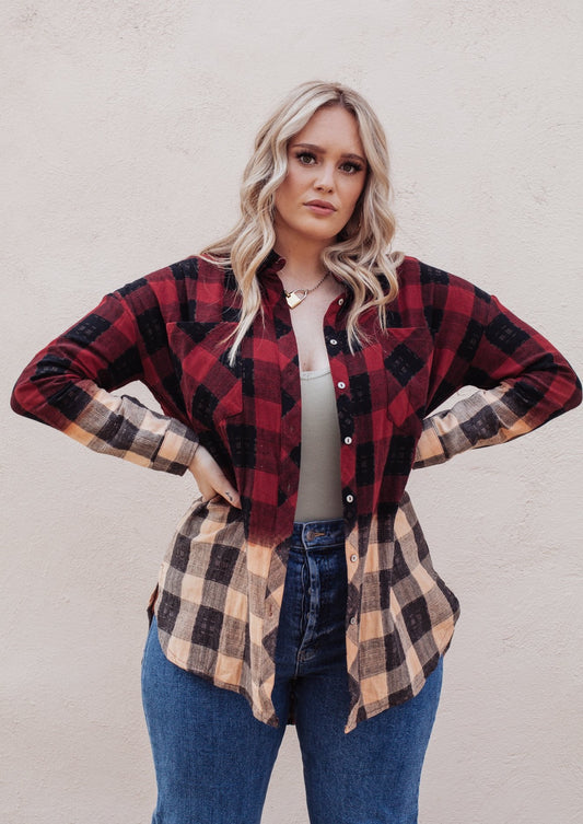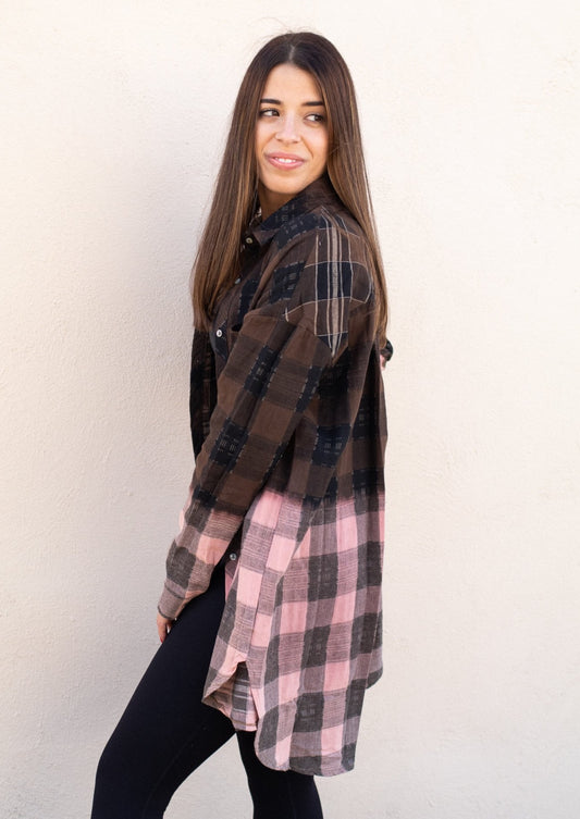 Fall For Me Extra Long Button Up *Pink/Brown*