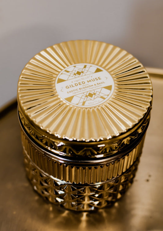 Exotic Blossom & Basil Gilded Faceted Jar, 11 oz - Capri Blue