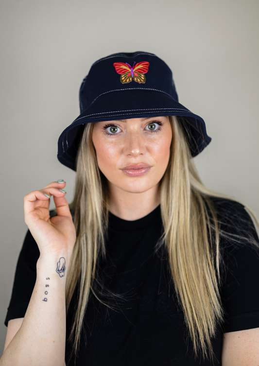 Exclusive Butterfly Adjustable Bucket Hat - Blue