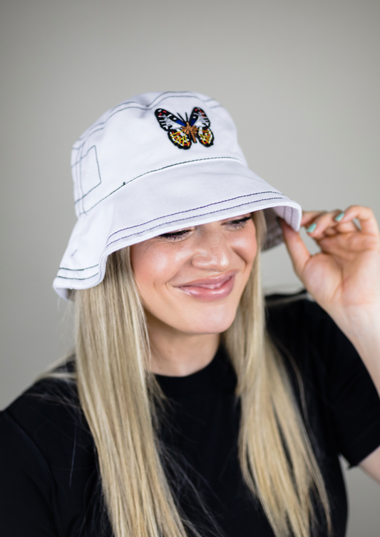 Exclusive Butterfly Adjustable Bucket Hat - White