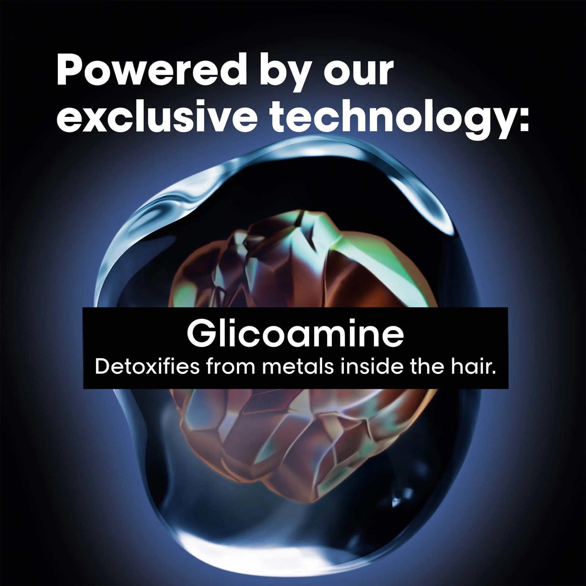 Glicoamine: the only active agent small enough to trap & neutralize metals inside the hair fiber.
