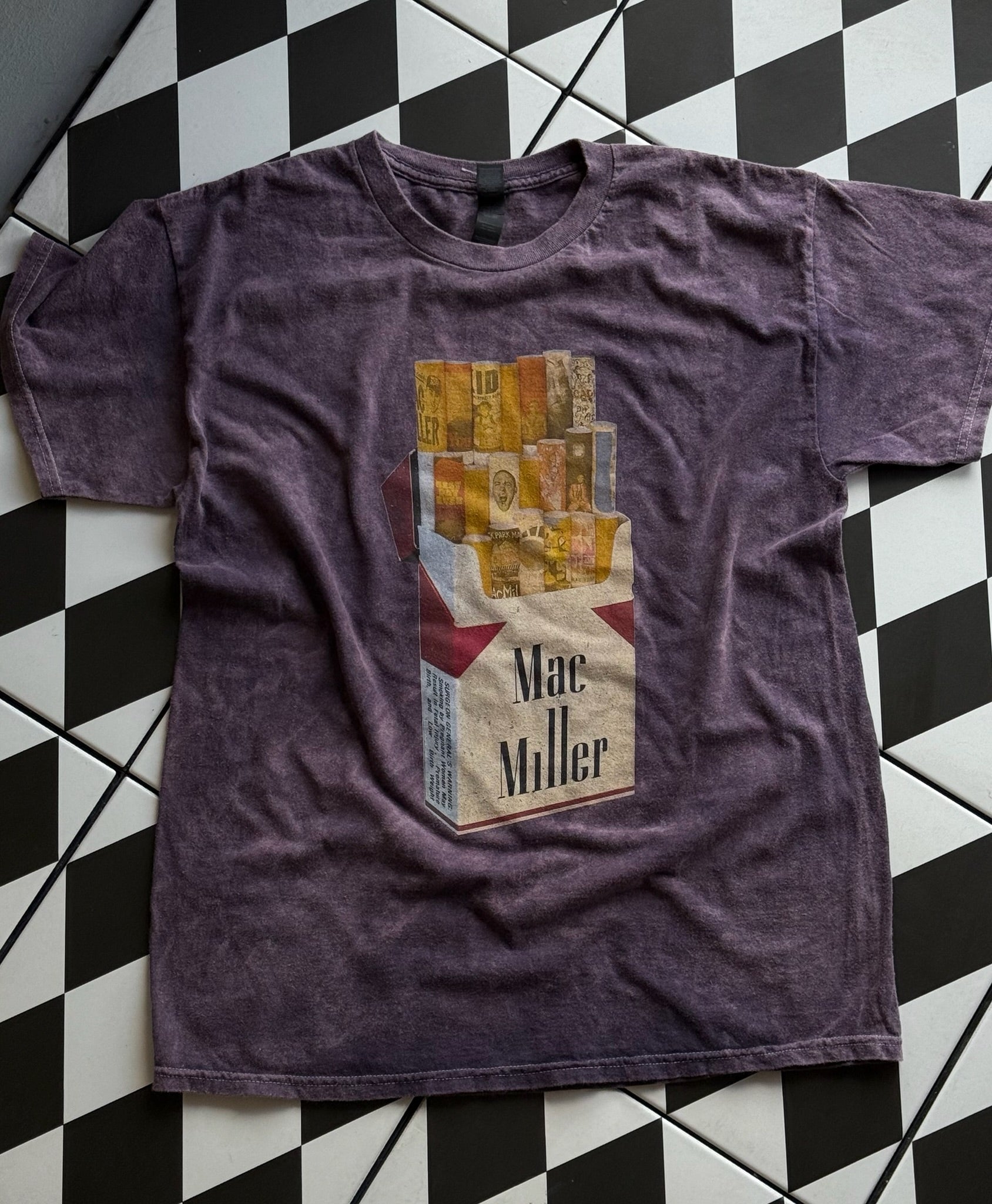 Mac Miller Cigarette Gildan Graphic Tee in Acid Wash Purple