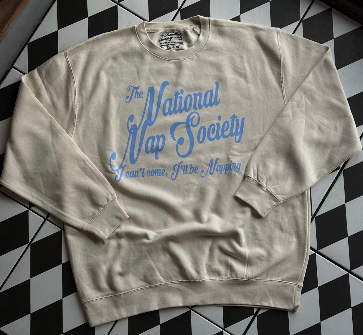 Welcome to the club — membership perks include unlimited naps, zero judgment, and unmatched coziness. The National Nap Society Crewneck is your official badge of honor for all things horizontal.