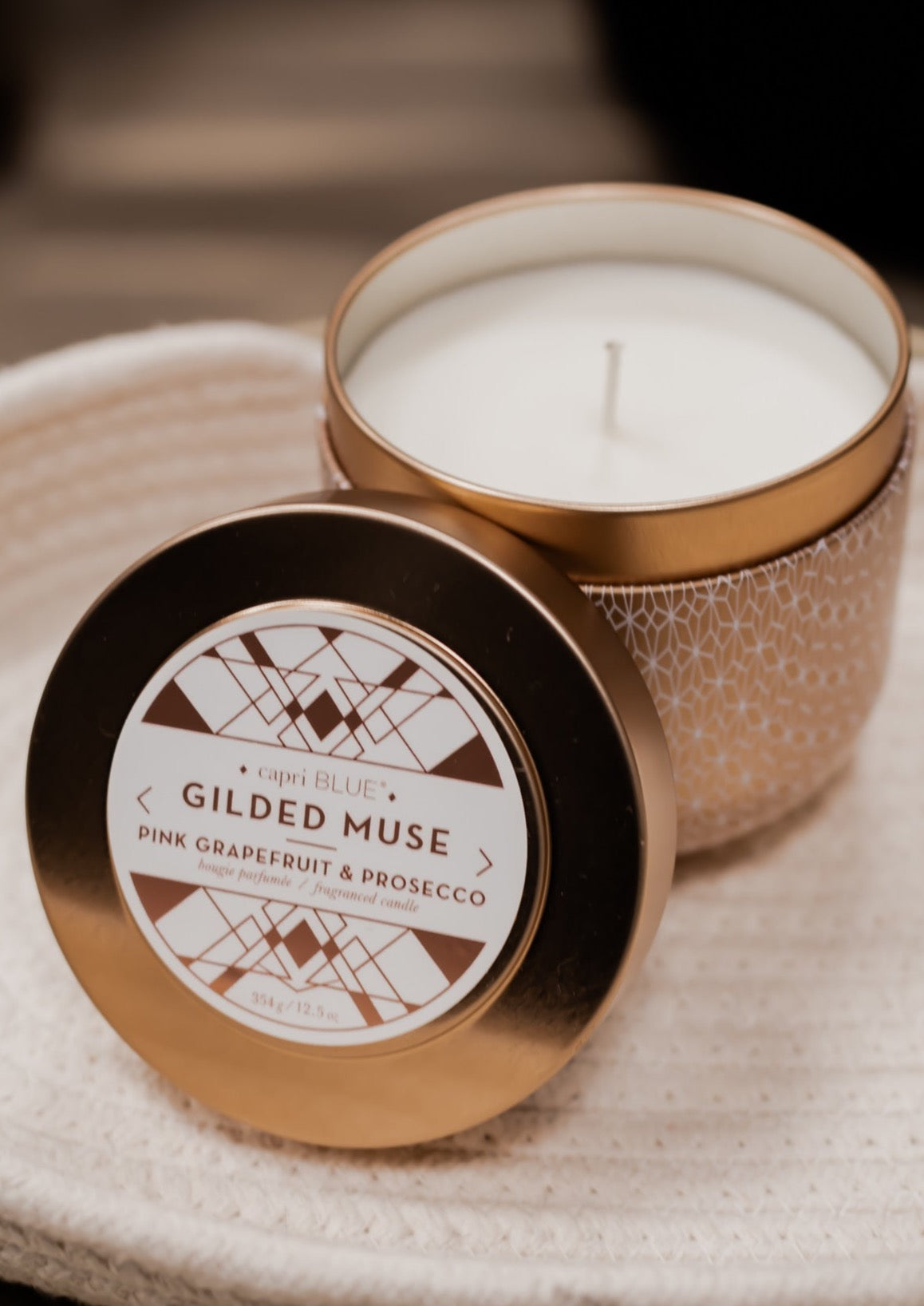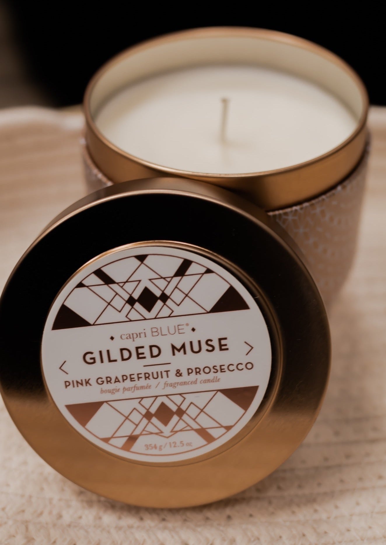 Pink Grapefruit & Prosecco Gilded Oversized Tin, 12.5 oz - Capri Blue