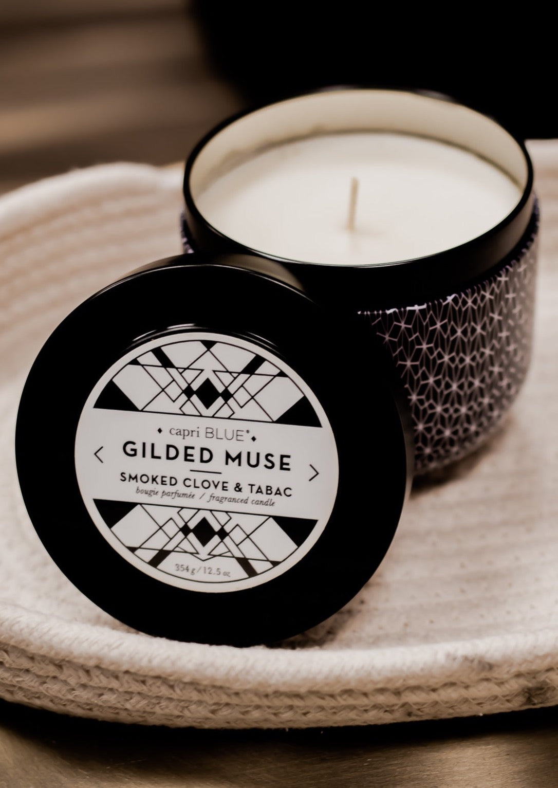 Smoked Clove & Tabac Gilded Oversized Tin, 12.5 oz - Capri Blue *Kenzies Pick*